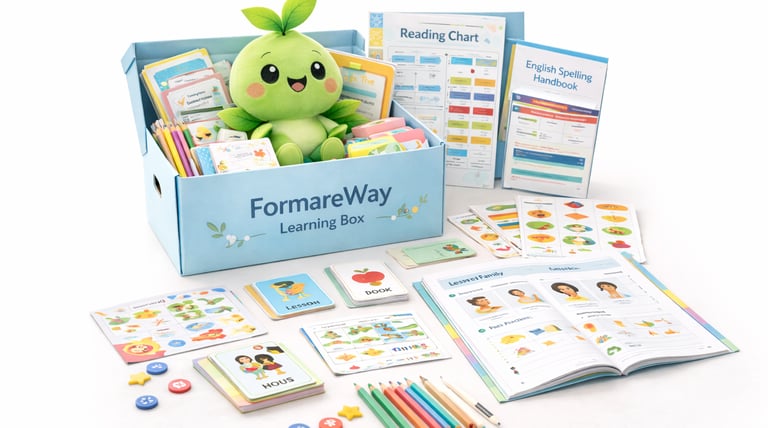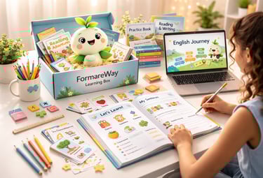 Aulas online e ao vivo, 2x por semana, com aprofundamento em leitura e escrita. Inclui a FormareWay Learning Box para consolidar o aprendizado em casa.